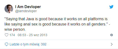 I rush to explain — Java is considered universal, nice to learn, and “works on every platform.“